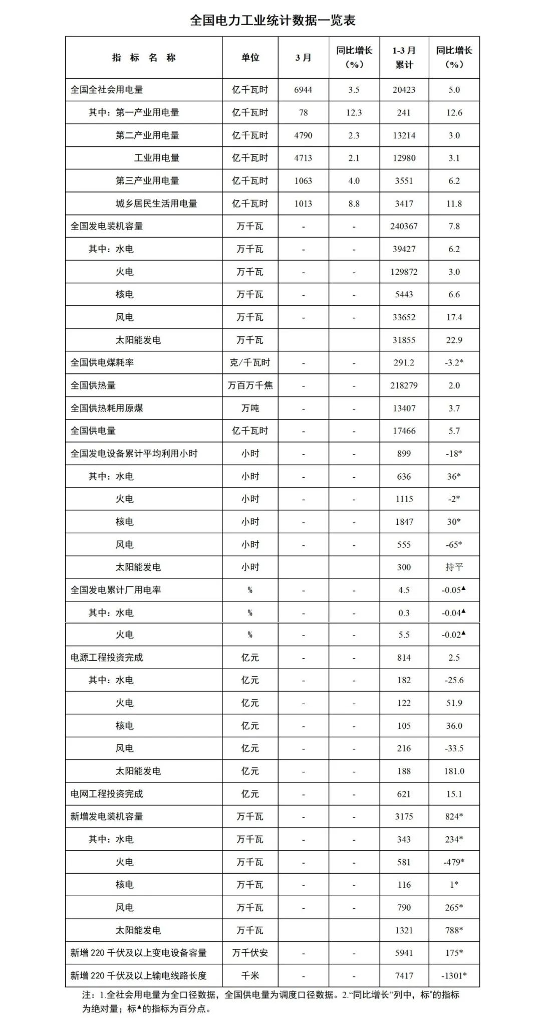國家能源局發布1-3月份全國電力工業統計數據