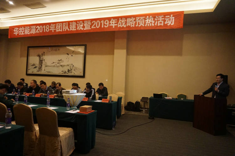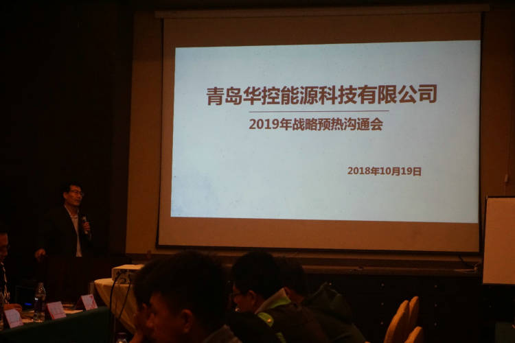 2018年10月19日下午至20日上午華控能源科技有限公司2019年戰略預熱溝通會在即墨金山度假酒店召開。會議分為三個部分:劉總對公司發展戰略規劃組織架構圖進行匯報、針對公司發展戰略各經營體進行分組討論以及各小組溝通結果的輸出匯報。